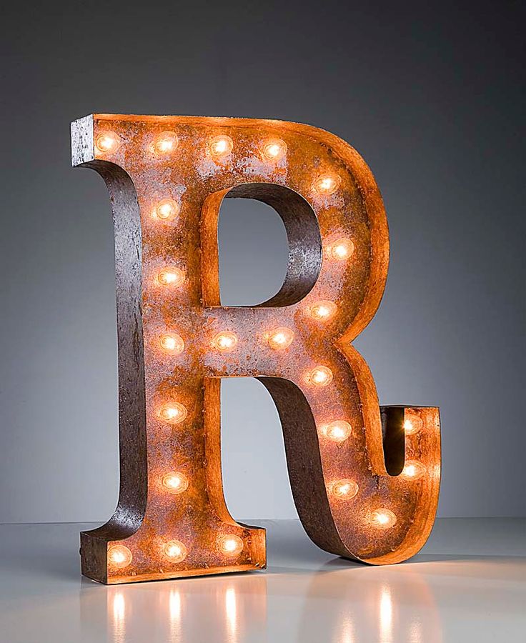 Красивая цветная стеклянная буква r, светящаяся в темнотеPREMIUM