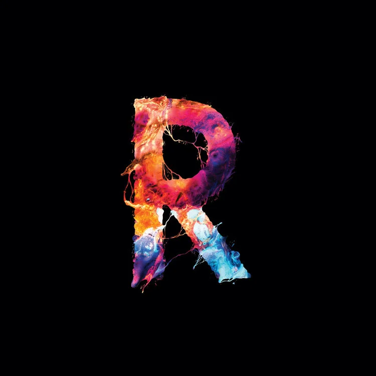 Объемный логотип буквы R с рисунком флага гордости лгбтк.