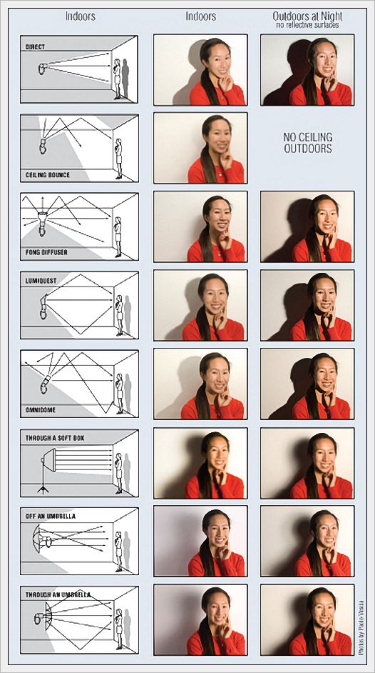 Поэтому главное правило съемки со вспышкой — работайте с отраженным светом.