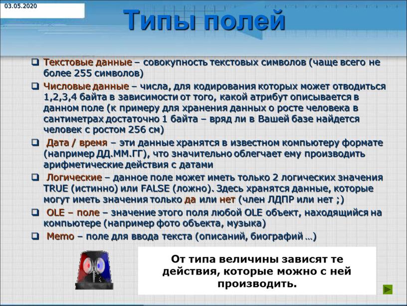 Пример свойств представления данных представлен на изображении ниже: