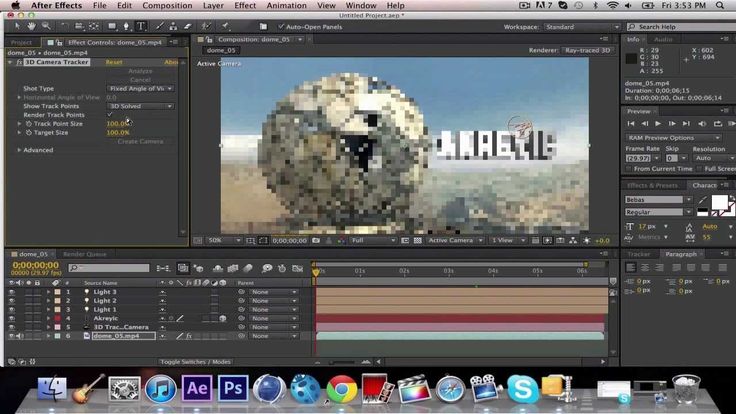 0641 Сделать комбинированный снимок . В открывшемся диалоговом окне переименуйте составной снимок в «Matte» и выберите Move With Layer , чтобы переместить маски со слоем в новую композицию. На этом шаге маски запекаются в слой, поэтому они рассчитываются по форме слоя. - Вернитесь к основной временной шкале композитного снимка, где выполняется отслеживание, и откройте элементы управления Camera Track.
