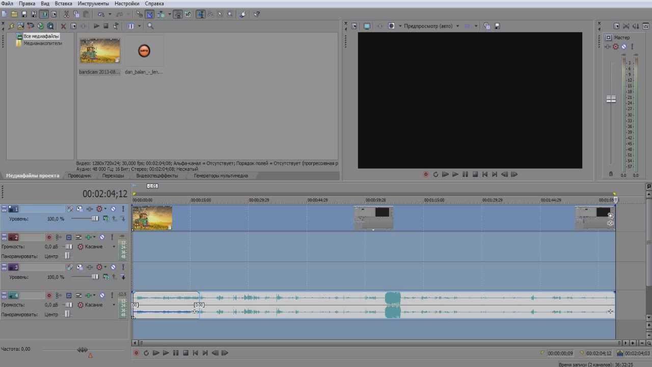 Интерфейс программы видеомонтажа Sony Vegas Pro 13.