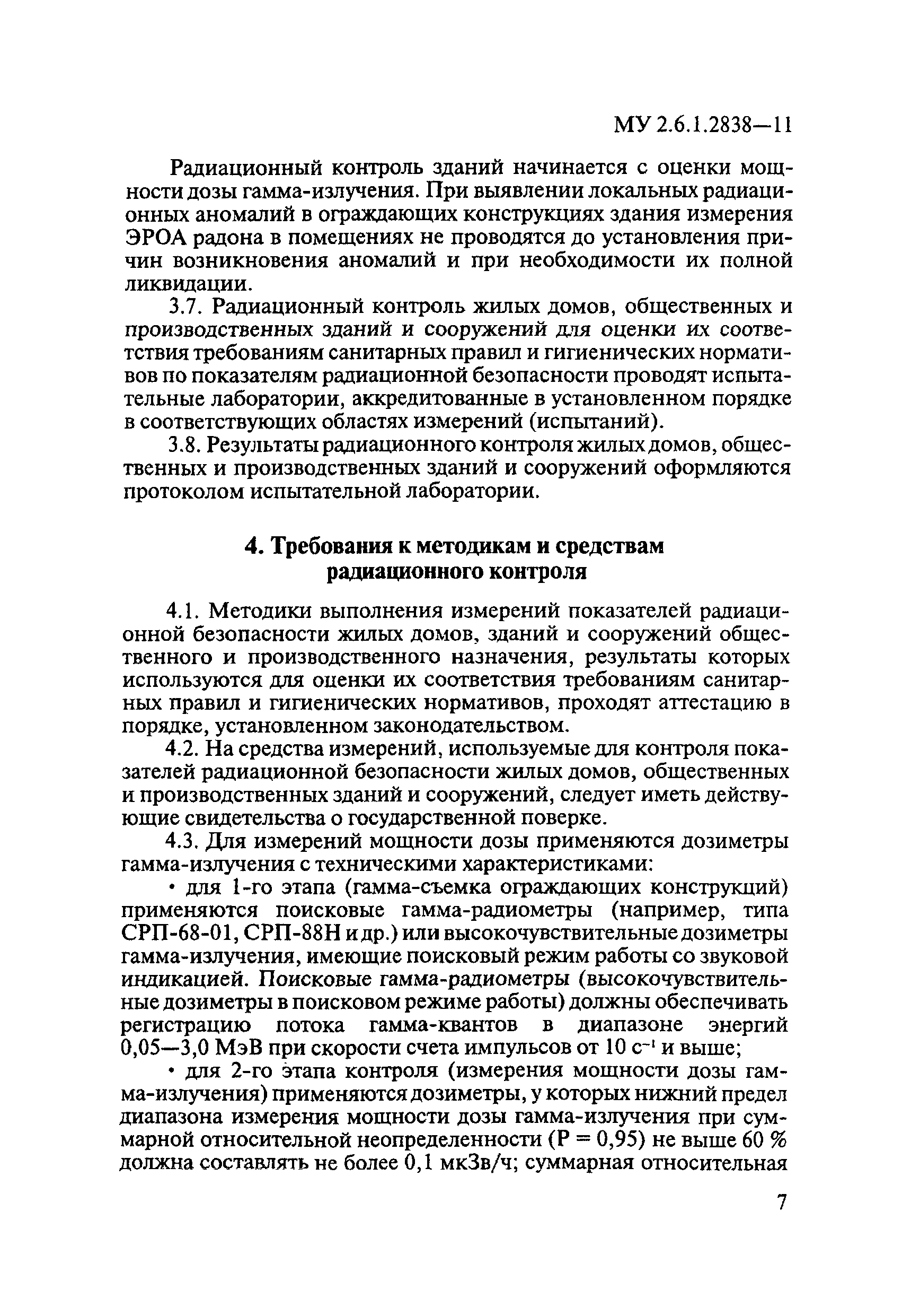 Контролируемой величиной в жилых домах и общественных зданиях является разность между МАЭД гамма-излучения в помещениях и на прилегающей территории, которая не должна превышать 0,3 мкЗв/ч.