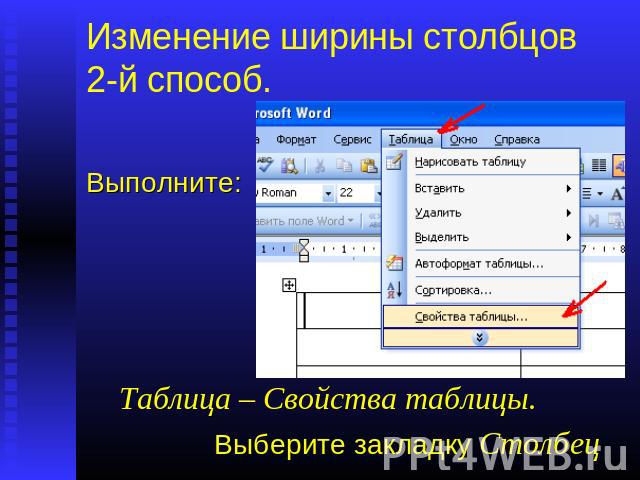 Шаг 2 – Настройте таблицу на слайде и вставьте текст в ячейки.