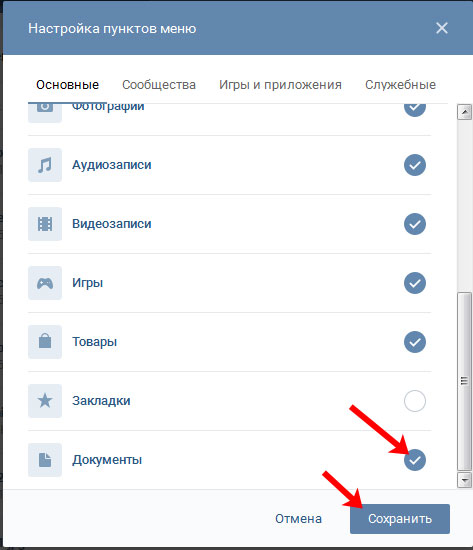 - Установите галочку напротив нужного пункта;