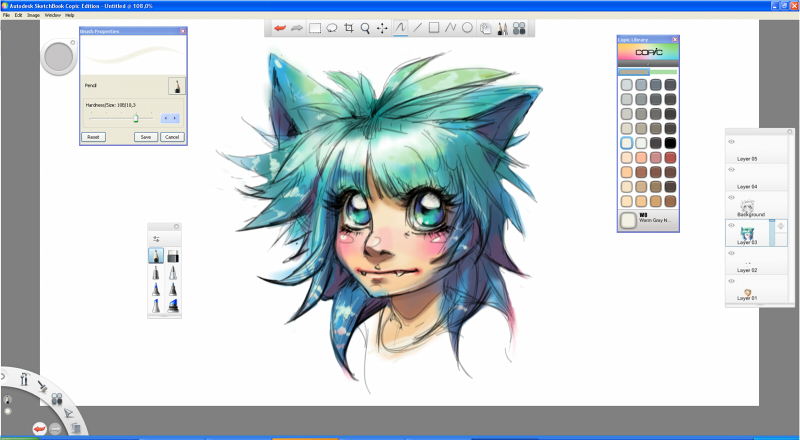За удобным всплывающим интерфейсом кроется все необходимое: маркеры, чернила, карандаши, 190 видов кистей различной фактуры, а также настоящая находка для художников — библиотека цветов Copic.