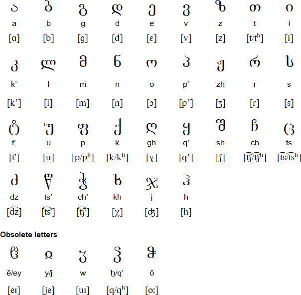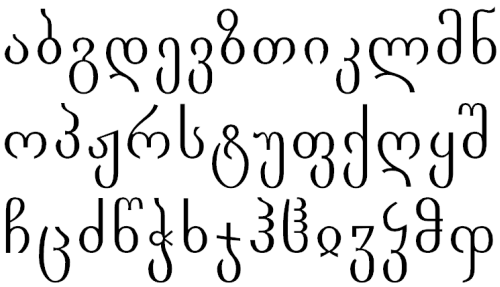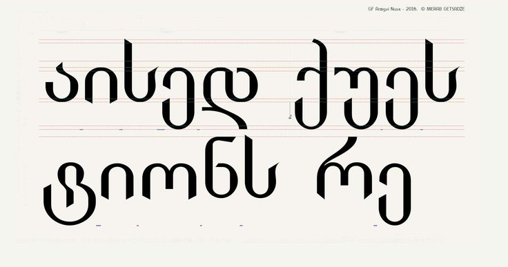 В Грузии облегчены заглавные буквы, увеличена высота x, надстрочные элементы возвышаются над высотой заглавной буквы, а числительные, часто прорезанные с большой степенью напряжения, выровнены и сделаны слегка несовпадающими — характерная черта что придает колорит индивидуальности любой странице, установленной в Грузии.