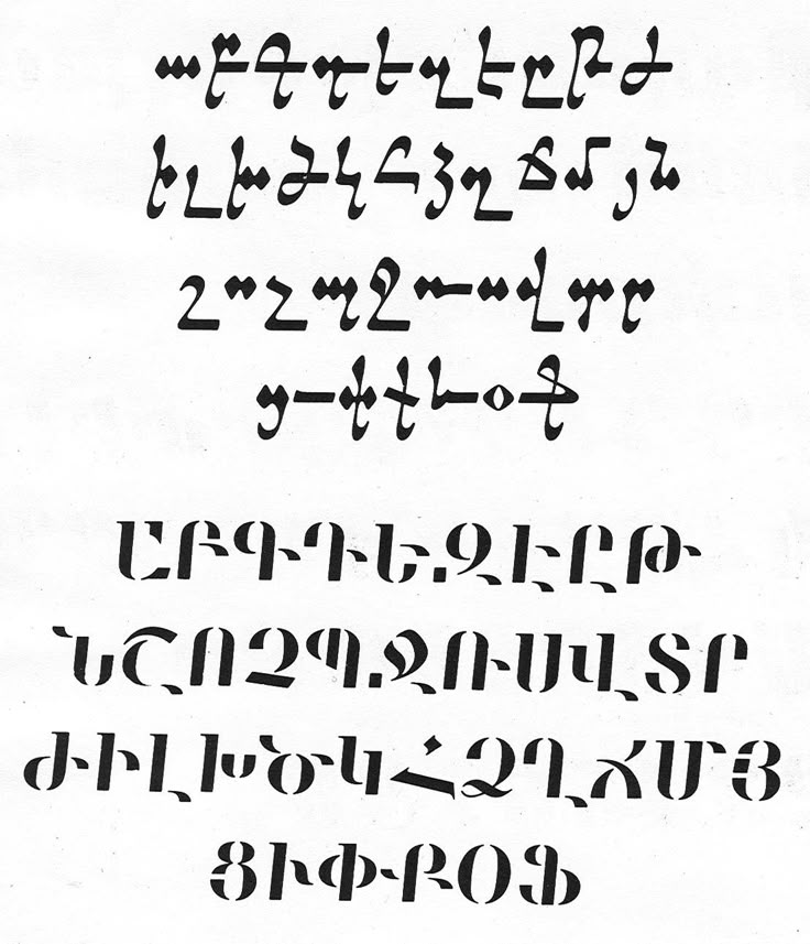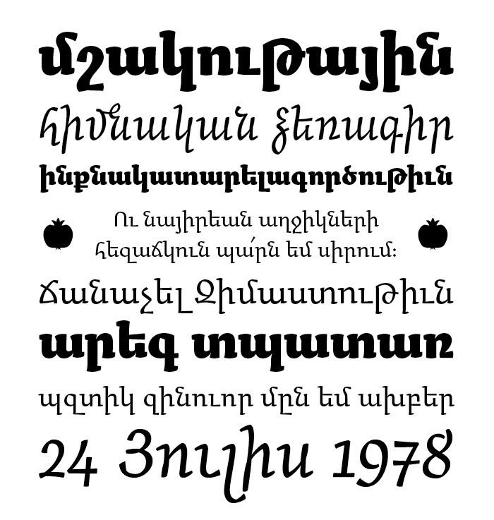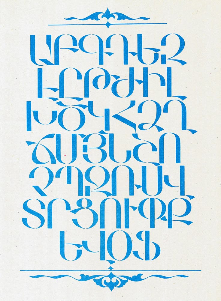 «Сейчас грузинская типографика навёрстывает упущенное, — подытоживает Акакий Размадзе, — и чтобы движение продолжалось, очень нужны грузинские версии популярных шрифтов». На тбилисских улицах часто можно встретить грузинскую версию Гельветики, которую Размадзе разработал во время стажировки в Monotype. Он же сделал грузинские версии FF Meta и Sabon.
