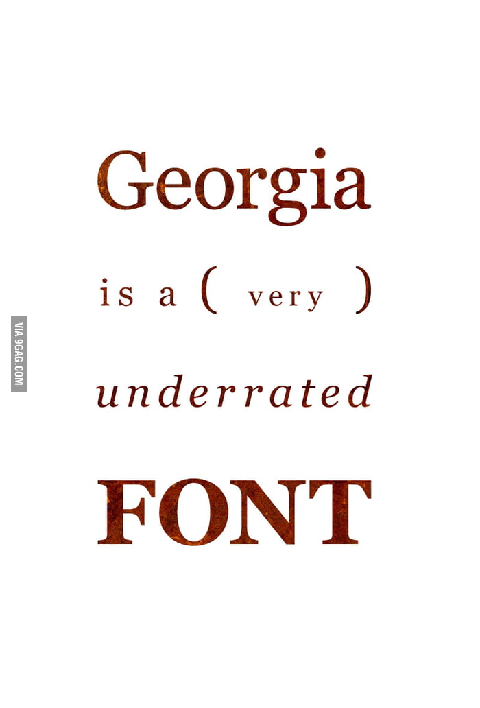 Несмотря на то, что Джорджия вдохновлена необходимостью обеспечивать четкость при низком разрешении экрана, шрифт Georgia резонирует с типографской индивидуальностью. Даже при небольших размерах лицо излучает дружелюбие; многие утверждают, что ощущение близости было подорвано из-за чрезмерного использования Times New Roman. Это является таким же свидетельством мастерства дизайнера шрифта Мэтью Картера, как и любого внутреннего качества дизайна шрифта, поскольку маленькие пиксельные пространства экрана могут быть мучительным холстом для любого шрифтового дизайнера. В Джорджии Картеру удалось создать семейство шрифтов, сочетающих высокую разборчивость с характером и шармом.