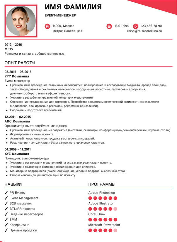 Не смешивайте разные должности в одном резюме, даже если они относятся к одной сфере деятельности. Лучше сделать отдельное резюме для каждой должности.