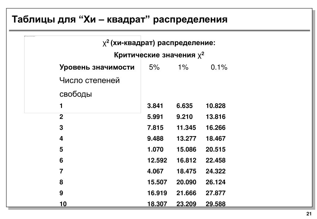 Критические значения в таблице часто сравнивают со статистикой теста Хи-квадрат. Если статистика теста больше критического значения, найденного в таблице, то вы можете отклонить нулевую гипотезу теста хи-квадрат и сделать вывод, что результаты теста статистически значимы.