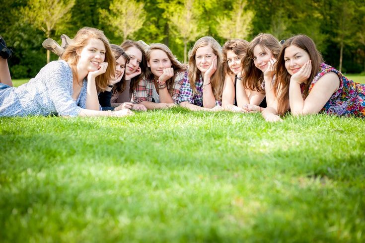 9. Лежа голова к голове, чтобы образовать круг… Это, безусловно, интересный ракурс для фотографий на природе, например, на лугу.
