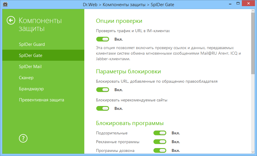 IM-Антивирус обеспечивает безопасность работы с IM-клиентами.