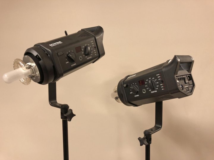 Моноблоки значительно крупнее, чем накамерные вспышки, но позволяют использовать все студийные модификаторы света, что очень важно. Ведь «голой» вспышкой много не сделаешь. Также моноблоки бывают гораздо бОльшей мощности, чем накамерные вспышки (вплоть до 1500 Дж).