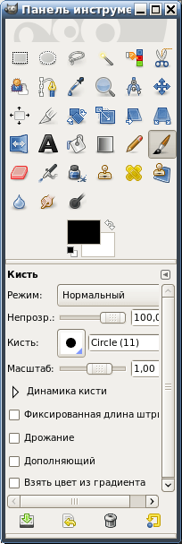 3 Элемент — Включение/отключение панелей кисти