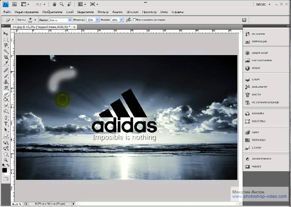 Этот инструмент используется для удаления пикселей с изображения с помощью кисти. Варианты инструмента определяют, как удаляются пиксели, либо по всему, что вы прокрашиваете, либо по определенным цветам, либо по определенным цветовым и тональным диапазонам. На самом базовом уровне ластик очень прост в использовании.Чтобы использовать Eraser Tool в Photoshop, нажмите E, затем выберите слой, который хотите стереть. Теперь выберите настройки кисти для настройки стирания и закрасьте изображение, которое вы хотите удалить. Место, где вы рисуете, станет прозрачным и навсегда удалит пиксели с выбранного слоя.