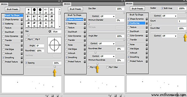 Я рекомендую вам оставить Spacing относительно небольшим, чтобы между кончиком кисти, перемещающимся из одной области в другую, не было так много места.