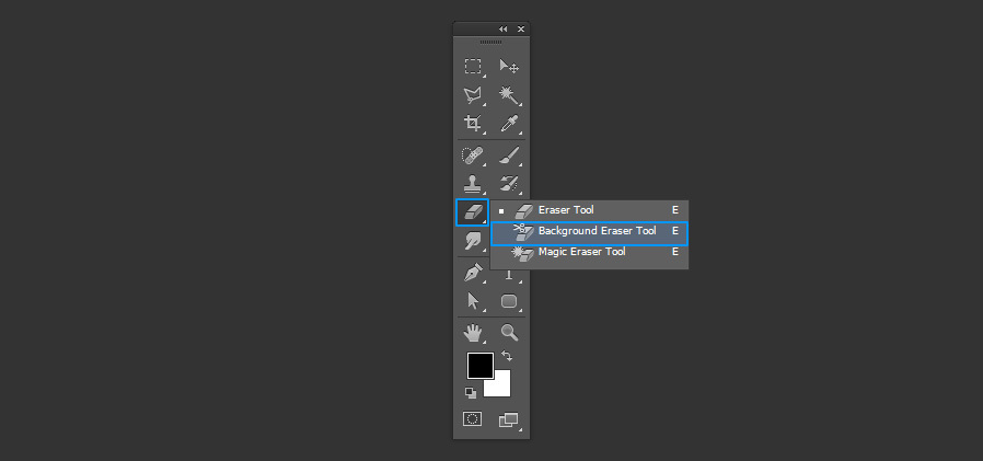 Инструмент «Ластик фона» можно найти под значком ластика, нажав и удерживая значок и выбрав инструмент «Ластик фона» из вариантов.