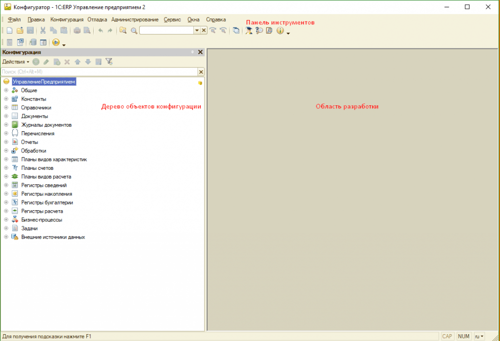 При запуске системы в режиме 1С:Предприятие открывается основное окно программы.