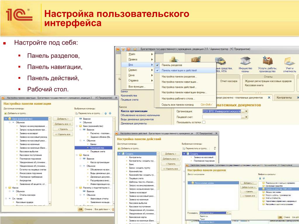 Концепция пользовательского интерфейса системы 1С:Предприятие 8 ориентирована на комфортную эффективную работу и соответствует современным тенденциям.