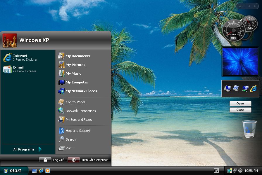 Одной из новых функций в Vista были живые миниатюры: переключатель задач (и его яркий брат Flip 3D) показывал миниатюрные изображения открытых окон, и если вы наводили курсор на значок на панели задач, он отображался предварительный просмотр соответствующего окна.
