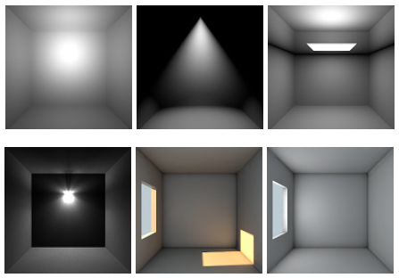 - Infinite Light : имитирует когерентные и параллельные бесконечные световые лучи