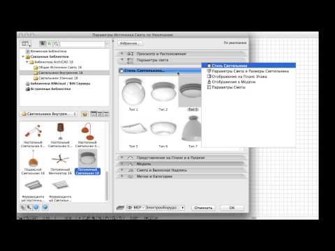 Источники света и объекты в библиотеке ARCHICAD