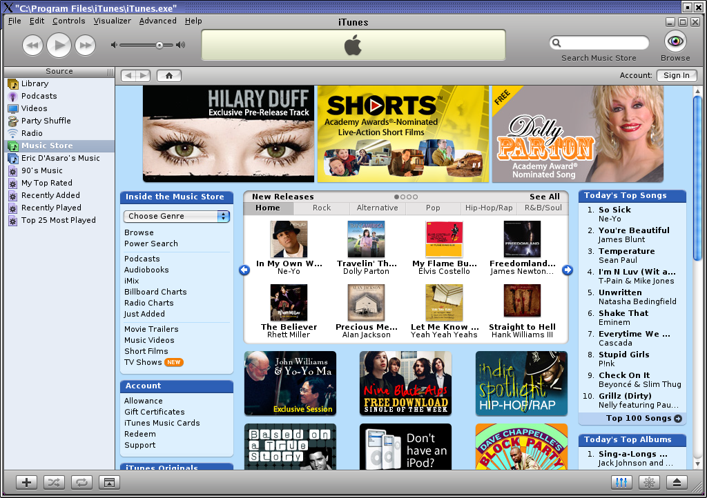 В сети пользователь может подключиться к магазину iTunes через проигрыватель iTunes.