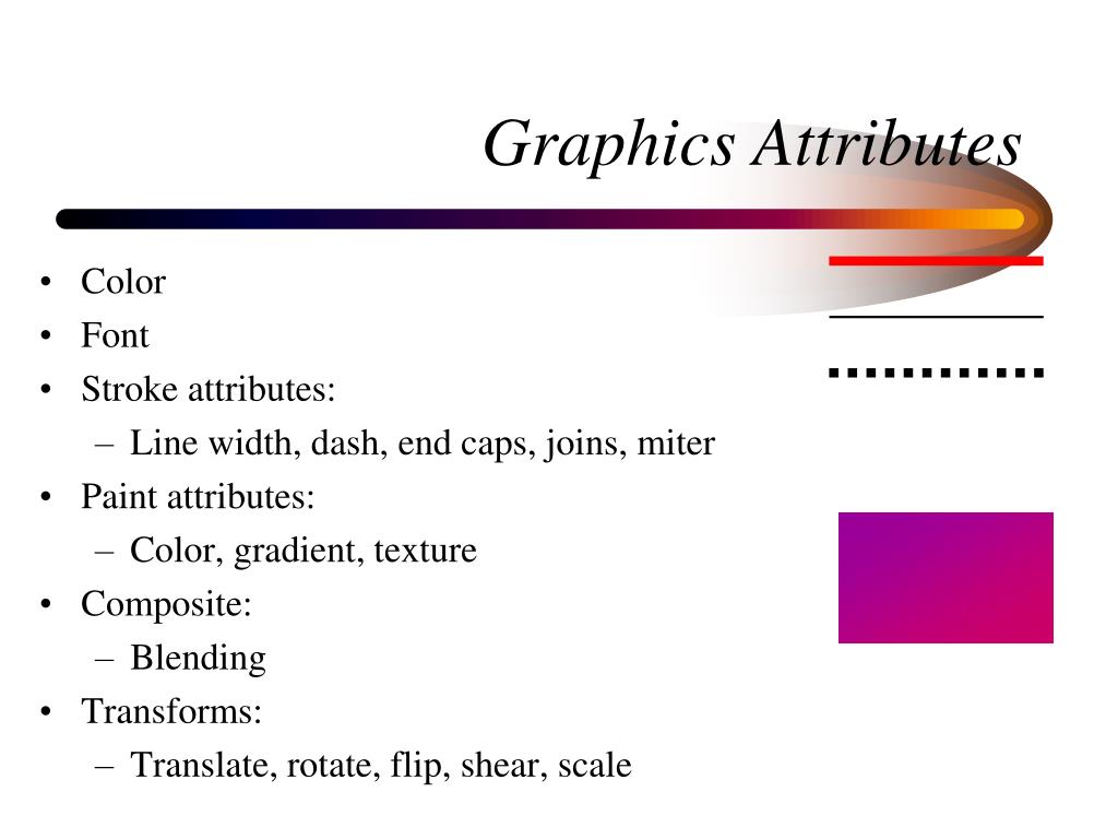 Объект Graphics инкапсулирует информацию о состоянии, необходимую для основных операций визуализации, поддерживаемых Java. Эта информация о состоянии включает в себя следующие свойства: