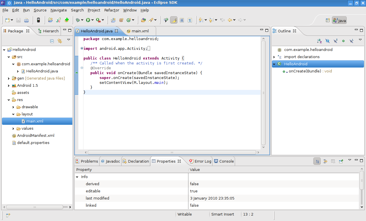 Желтый значок с надписью HelloWorld и диагональными линиями должен появиться.