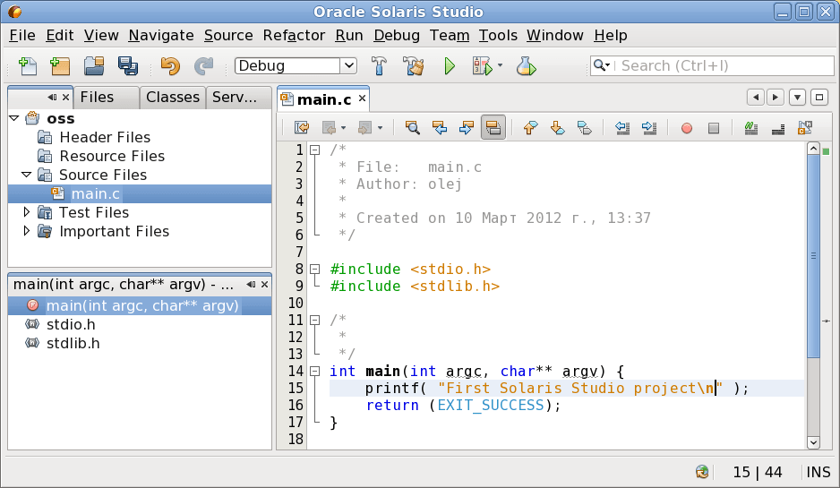 Ниже приведен код программы main ().