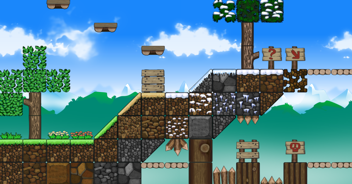 Для начала сделаем платформер. В этом примере особое правило платформеров состоит в том, что игрок должен управлять двумя персонажами одновременно, чтобы решать головоломки, а персонажи должны встретиться, чтобы пройти уровень.