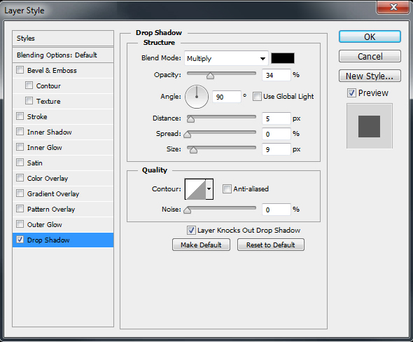 Когда вы довольны видом тени, пришло время зафиксировать изменения. Просто нажмите OK в диалоговом окне стилей слоя, чтобы выйти из настроек и вернуться на панель слоев.