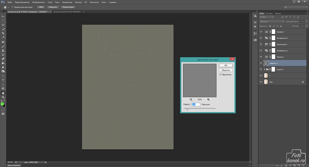Примечание переводчика: для того что бы перейти к настройкам «Стиль слоя» сделайте двойной щелчок левой клавишей мыши по слою.