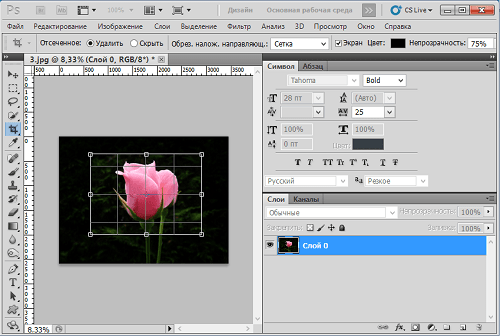 Для того, чтобы гармонично расположить ключевые элементы изображения, в инструменте «Рамка» (Crop) есть вспомогательные сетки.