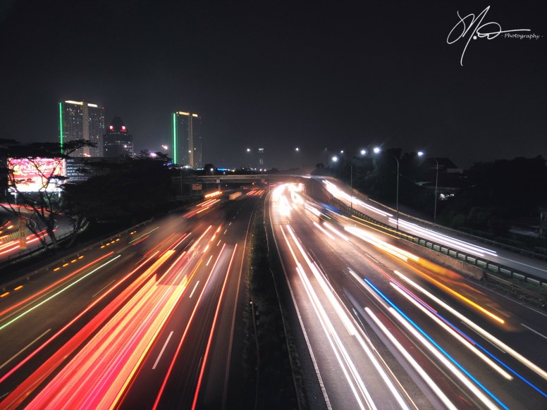 Выберите оживленную дорогу с активным движением в ночное время суток. Используйте устойчивый штатив и установите камеру на нём так, чтобы она полностью охватывала участок трассы с активным движением.