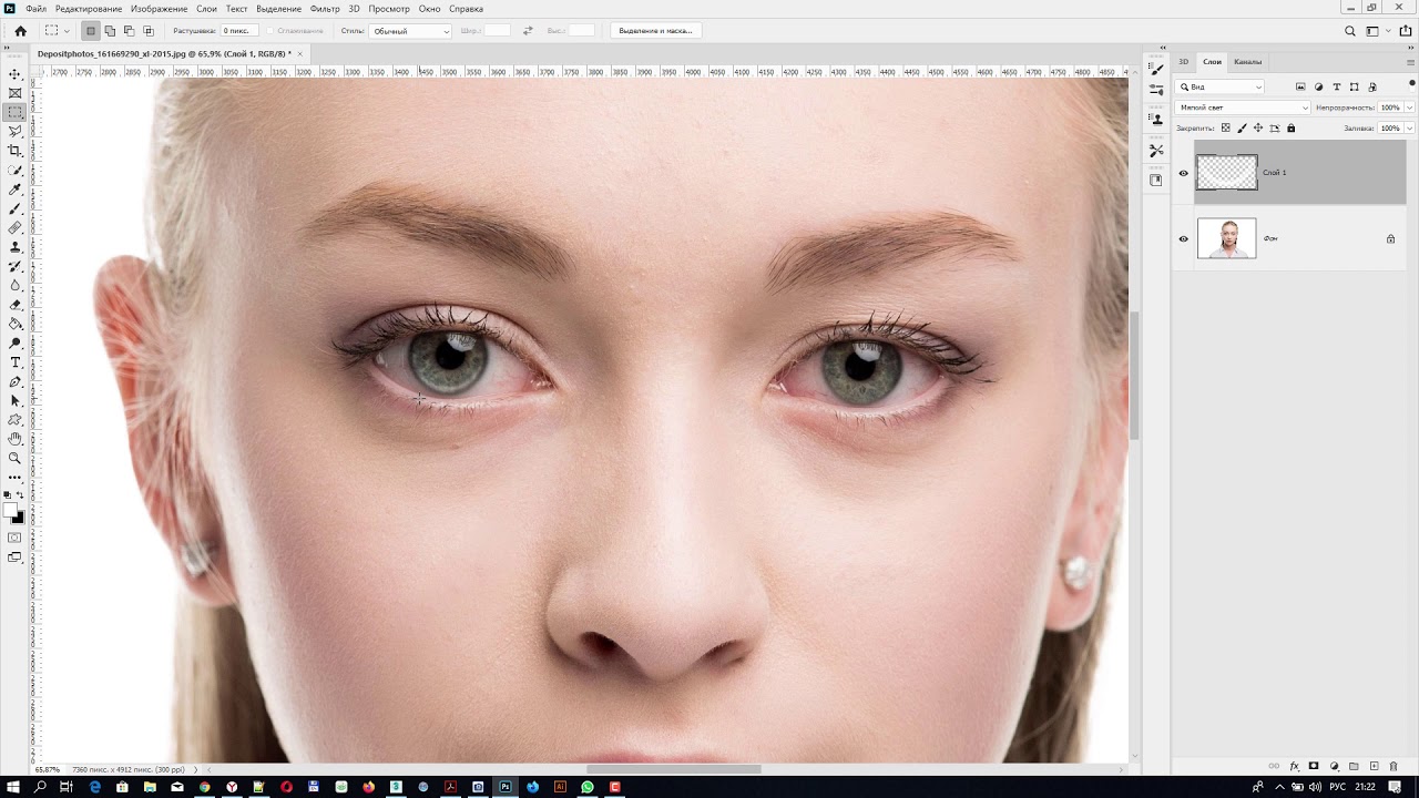 Когда вы ретушируете глаза, вам не нужно создавать резервную копию исходного изображения. Все, что вам требуется – это выделить и скопировать область глаз на новый слой, а затем работать с копией, не затрагивая оригинал.