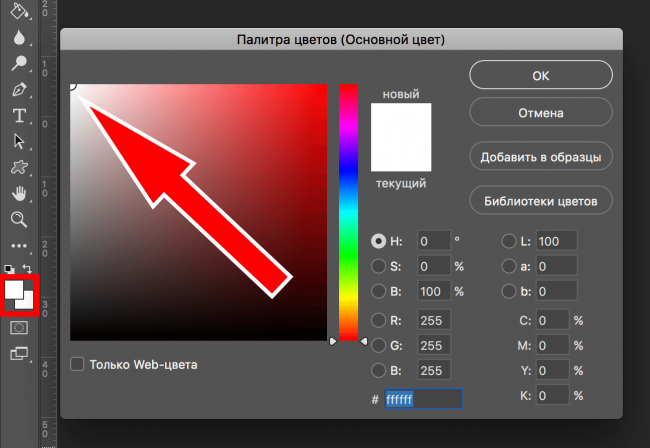 Выбранный вами цвет появится в поле «Цвет переднего плана» на панели «Инструменты».