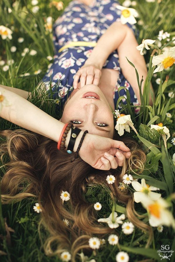 6. Используйте цветы не только в качестве фона, но и как аксессуар. Соберите букет, попробуйте свить венок или просто сорвите цветок – будет чем занять руки во время съемки.