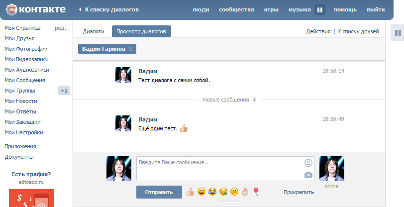 Используйте поле поиска для поиска пользователя или списка контактов.