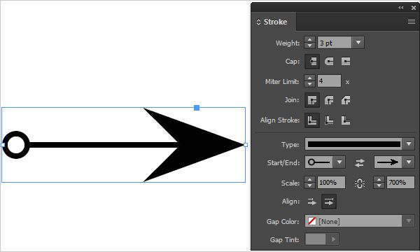 Применение другого стиля к Конец штриха может создать стильный образ. Здесь я выбрал Circle , чтобы придать стреле своего рода ретро-стиль середины века.