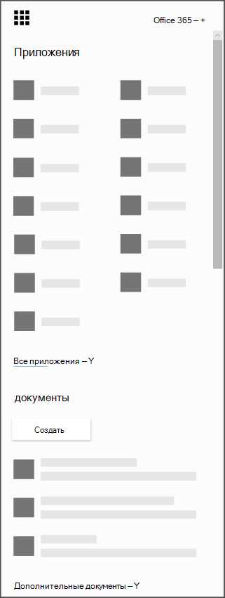 При первом открытии средства запуска приложений вы увидите в нем основные приложения Office. Если ваших любимых приложений в нем нет, вы можете добавить их, чтобы получать к ним быстрый доступ.