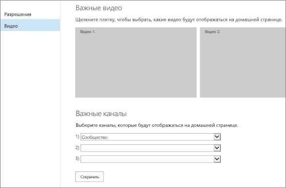 Вы можете выбрать видео и каналы, которые будут отображаться на домашней странице портала Office 365 Видео. На ней можно разместить до пяти видео и до трех каналов.