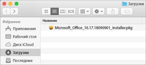 Когда загрузка завершится, откройте Finder, перейдите к Загрузкам и дважды щелкните файл Microsoft Office Installer.pkg (его имя может немного отличаться).