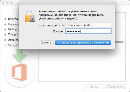 Введите пароль, соответствующий имени пользователя Mac (пароль, который вы используете для входа в Mac), а затем нажмите кнопку Установить ПО (Это пароль, который вы используете для входа в Mac.)