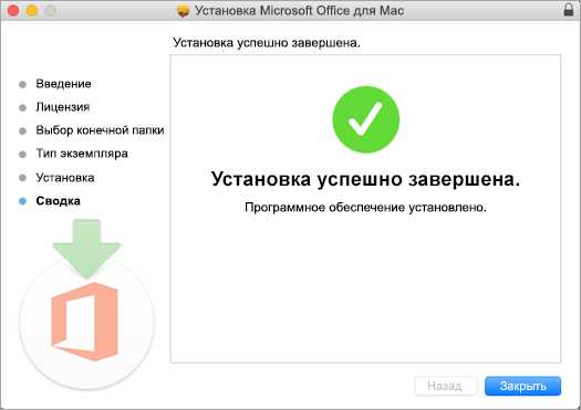 Начнется установка программного обеспечения. По завершении установки нажмите кнопку Закрыть. Если установить Office не удается, см. статью Что делать, если не удается установить или активировать Office для Mac?