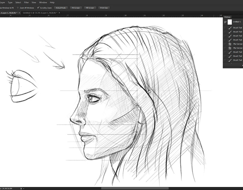 Они постоянно искривляются, делаются неровными, а при необходимости подрисовать что-то — попасть по нужному месту совсем непросто. В таком случае не стесняйтесь использовать инструмент увеличения масштаба. Чем крупнее вы увеличите, тем точнее можно подогнать края рисунка. Переключайтесь между нормальным видом и увеличением, чтоб довести изображение до совершенства.