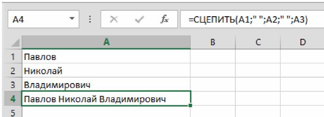 Мы рассмотрели простые способы соединения ячеек, при которых удаляет все содержимое в них, за исключением первого элемента. Чтобы сохранить сведения, содержащиеся в каждой ячейке, программа предусматривает функцию «Сцепить».