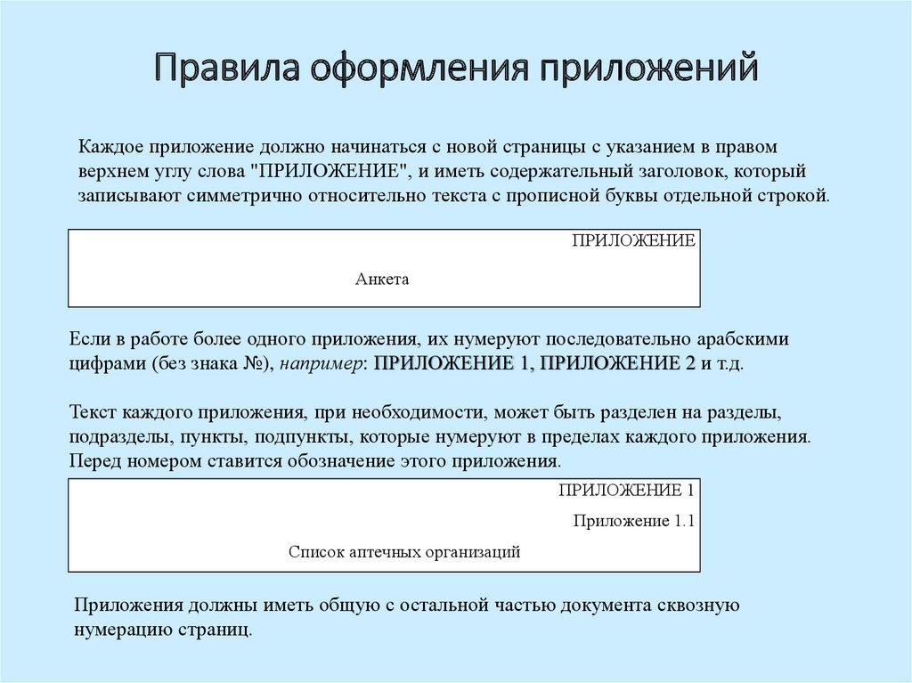 При оформлении приложений следует соблюдать следующие несложные правила :