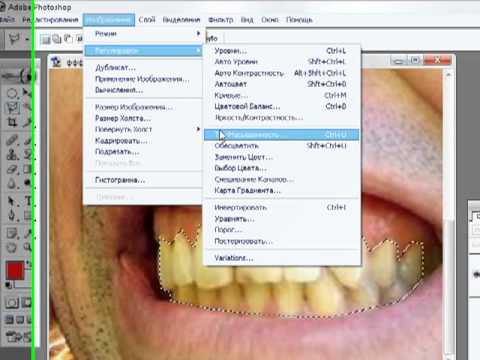 Теперь на изображении видно, что я не только осветлил его зубы, но и осветлил область вокруг них, так как это была область, которую я изначально выделил с помощью инструмента «Лассо»: